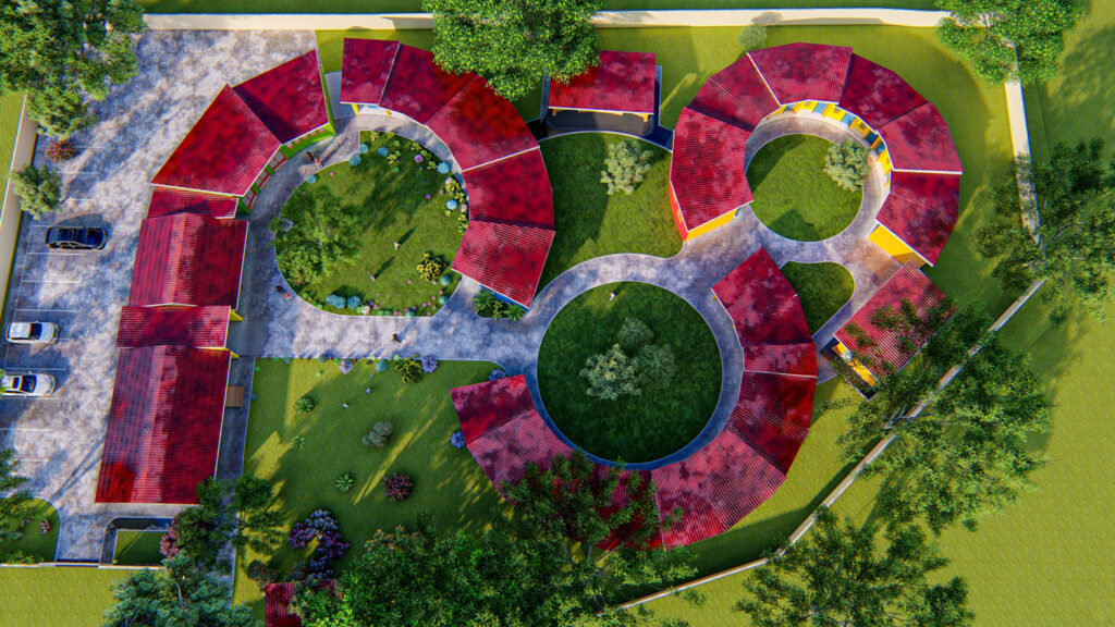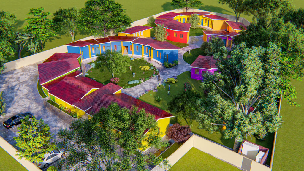 Since the project is entirely funded by donations it was phased to cater for the gradual capital inflow. The single-storey building consists of separate blocks, to facilitate separate construction steps. The first phase would encompass 8 bedrooms for the children and a carer each, toilets and showers, the administration block and the canteen with kitchen and laundry. All essential services will be constructed in the first phase.